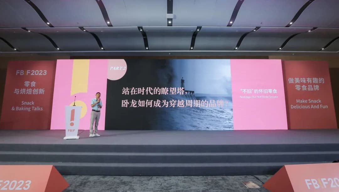 近期2023FBIF(2023食品飲料創新論壇)在深圳召開,作為過去三年規模最大的一屆論壇,受到食品與飲料行業各個品牌的關注與重視。“臥龍”受邀成為參展品牌,“臥龍”董事長兼總經理張輝先生受邀為零食與烘焙分論壇演講嘉賓,以“不舊”的懷舊零食為主題詮釋“臥龍”品牌的內核。